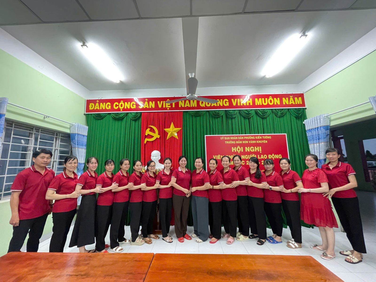 Sáng ngày 12/10/2024 BCHCĐ Trường Mầm Non Vành Khuyên phối hợp với BGH nhà trường tổ chức Hội nghị Viên chức, Người Lao động năm học 2024 - 2025, tham dự Hội Nghị có Bà Nguyễn Thị Hồng Nho Bí thư Đảng Ủy Phường 3, Ông Bùi Lê Trung PCT Phường 3 Đây là dịp để mỗi thành viên công đoàn, viên chức, người lao động thực hiện quyền dân chủ, đề xuất ý kiến, bày tỏ nguyện vọng với lãnh đạo nhà trường. Đồng thời, đây còn là cơ hội để nhà trường kiến nghị những quyền lợi chính đáng của viên chức và người lao động đến với các cấp lãnh đạo. Tại hội nghị, các đoàn viên công đoàn đã nghiêm túc lắng nghe, tích cực thảo luận, thẳng thắn đóng góp ý kiến để hoàn thiện các kế hoạch, chia sẻ các giải pháp thực hiện nhiệm vụ, kế hoạch, chỉ tiêu năm học 2024-2025. Với tinh thần làm việc nghiêm túc, dân chủ và đầy trách nhiệm Hội nghị Cán bộ viên chức năm học 2024 - 2025 đã thành công tốt đẹp. Tập thể CBGV - CĐV CĐCS trường MN Vành Khuyên quyết tâm thực hiện thắng lợi nhiệm vụ năm học 2024 – 2025.