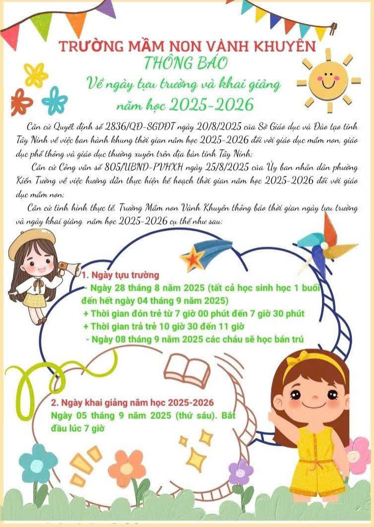 THÔNG BÁO VỀ NGÀY TỰU TRƯỜNG VÀ KHAI GIẢNG NĂM HỌC 2025-2026