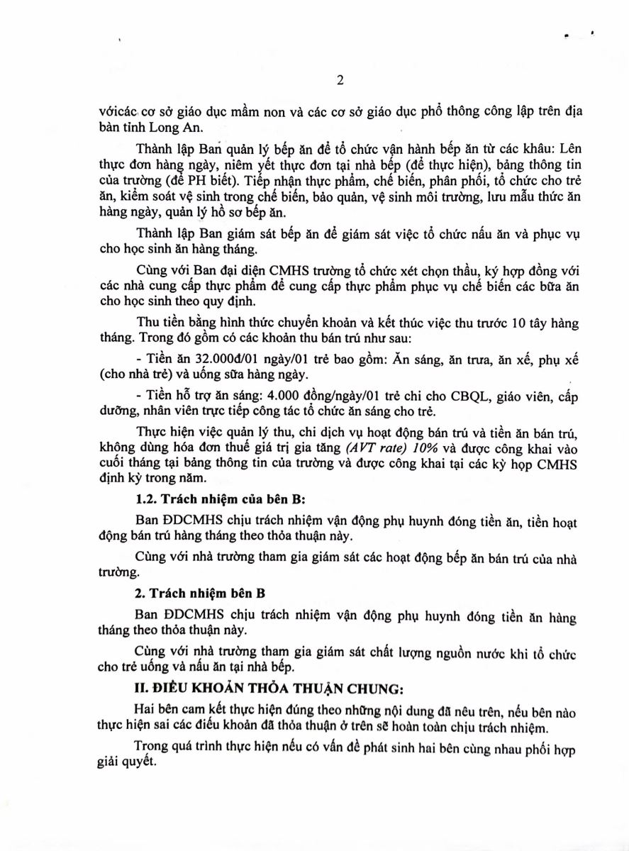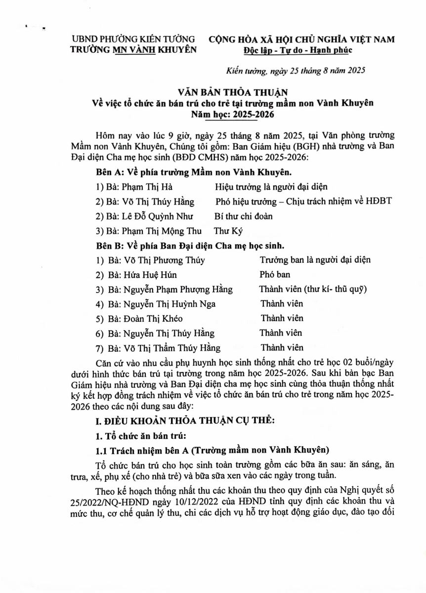VĂN BẢN THOẢ THUẬN VỀ VIỆC TỔ CHỨC ĂN BÁN TRÚCHO TRẺ