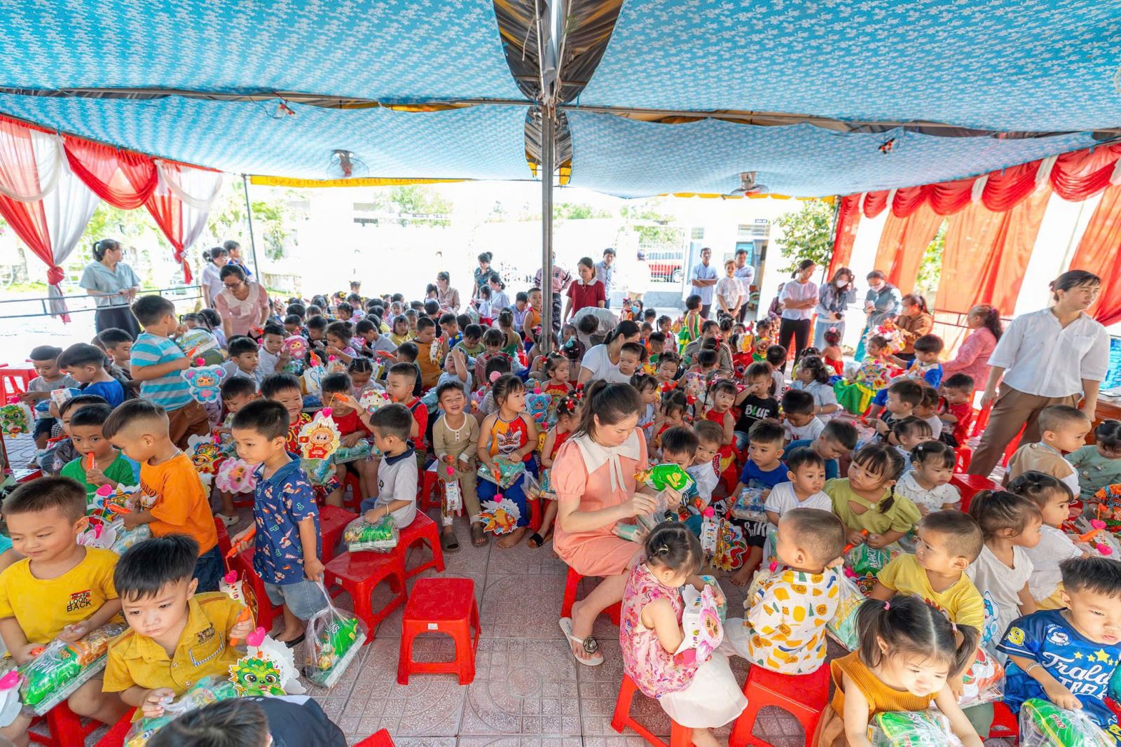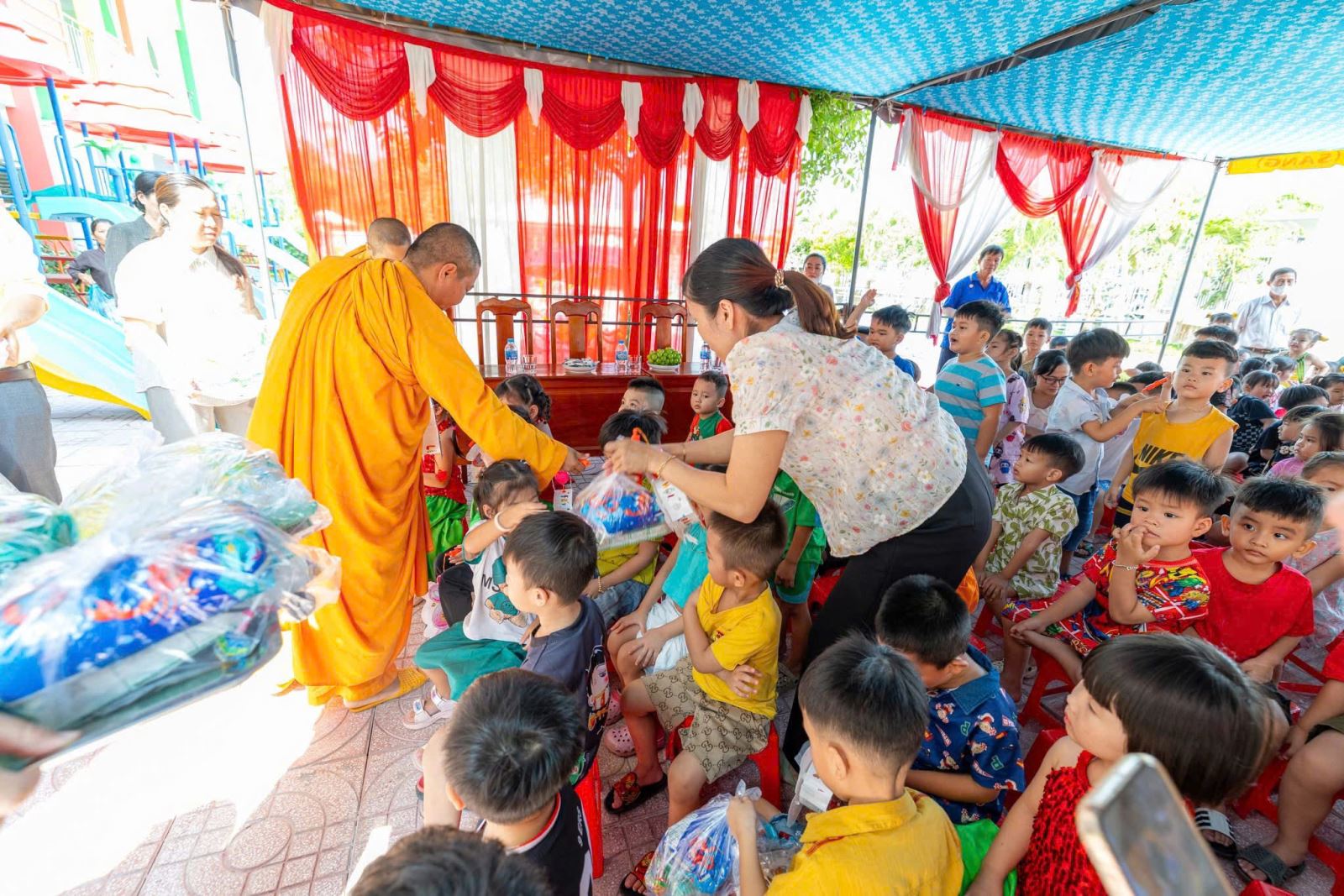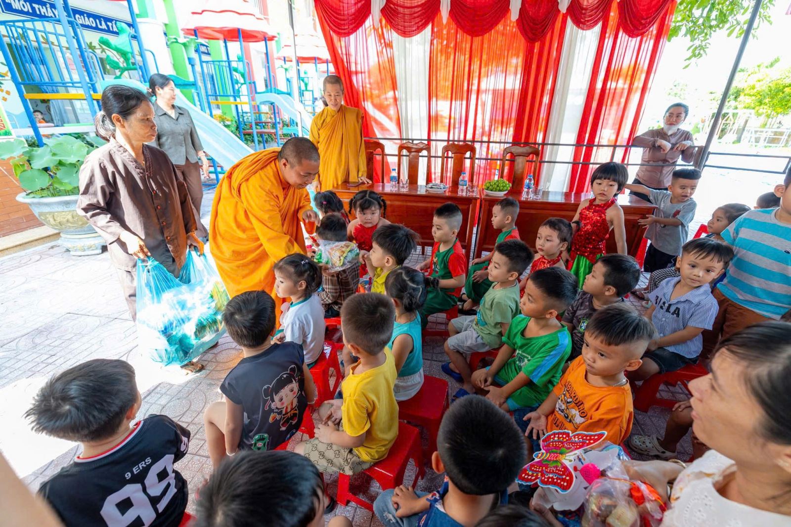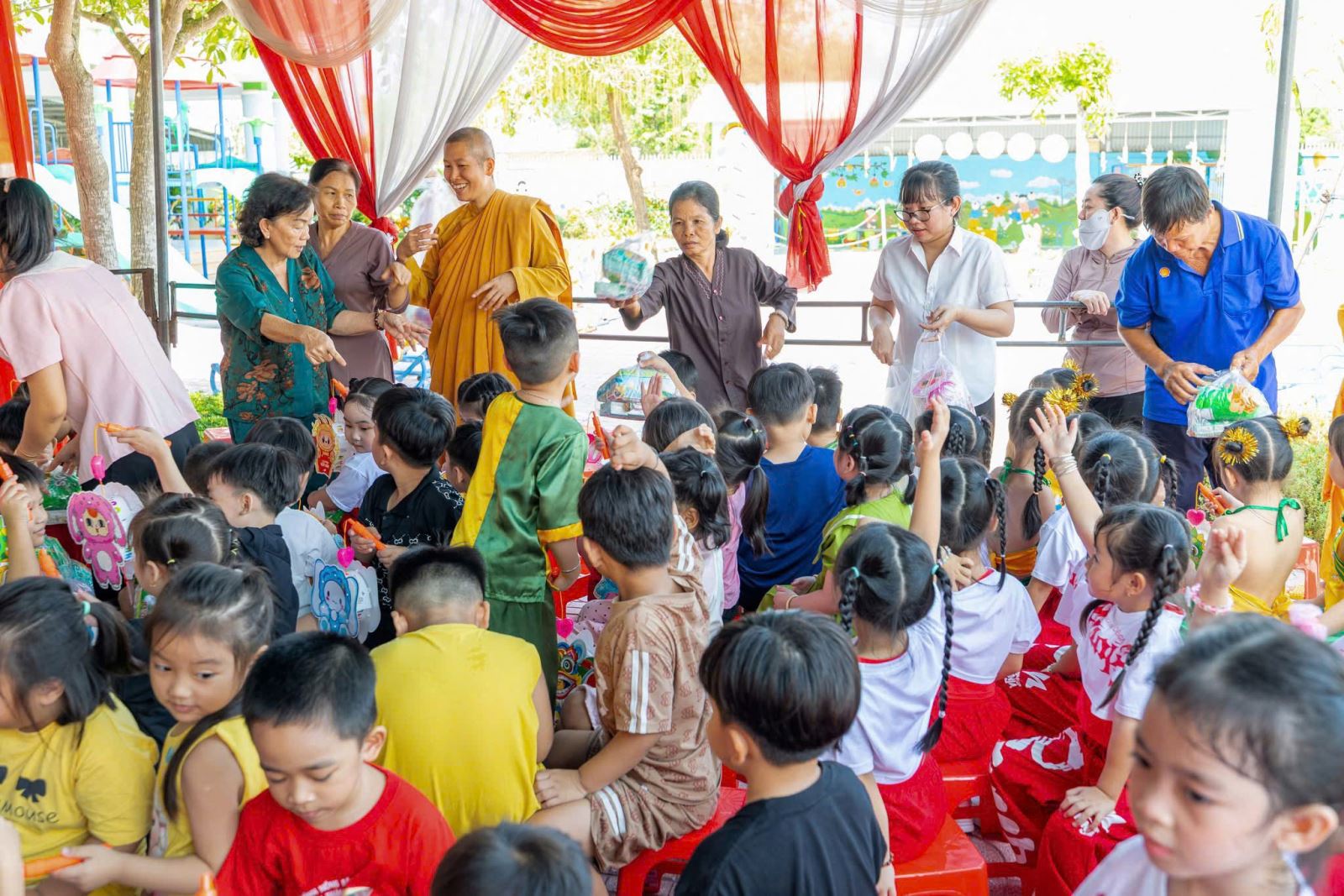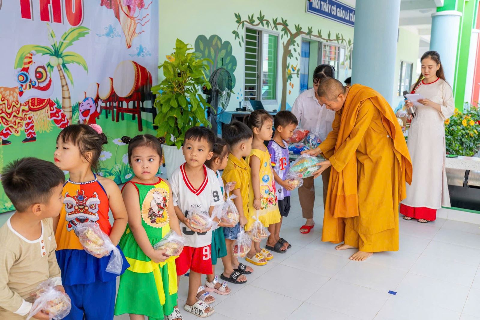 Hôm nay, Trường Mầm non Vành Khuyên đã có một mùa Trung thu thật ý nghĩa và tràn đầy niềm vui khi các bé được nhận những món quà yêu thương từ đoàn Sư cô và quý Phật tử. Những phần quà nhỏ nhưng chứa đựng tấm lòng từ bi, sự quan tâm và tình yêu thương sâu sắc dành cho các con – những mầm non tương lai. Ánh mắt rạng rỡ, nụ cười hồn nhiên của các bé chính là niềm hạnh phúc lớn nhất mà nhà trường đón nhận trong ngày hội trăng rằm năm nay. Nhà trường xin trân trọng gửi lời cảm ơn đến quý Sư cô và toàn thể quý Phật tử đã dành thời gian đến thăm, trao quà và mang đến không khí Tết Trung thu đầm ấm cho các con. Sự chung tay của quý đoàn đã góp phần làm cho năm học mới thêm trọn vẹn, để mỗi đứa trẻ đều được hưởng trọn niềm vui của ngày Tết Thiếu nhi truyền thống.