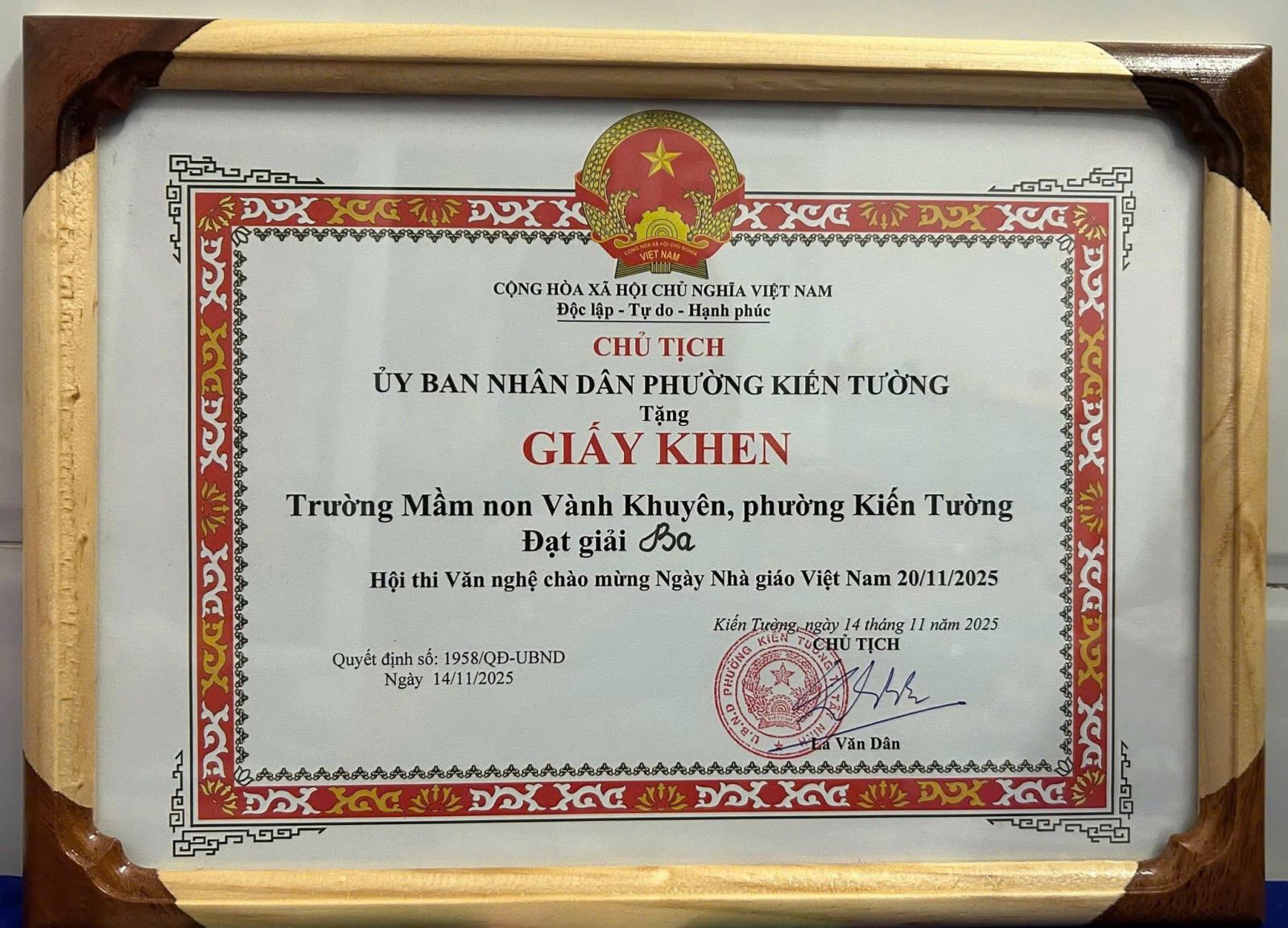 Thiết thực chào mừng kỷ niệm 43 năm Ngày Nhà giáo Việt Nam, UBND phường Kiến Tường đã tổ chức Hội thi Văn nghệ chào mừng Ngày Nhà giáo Việt Nam 20/11, tạo không khí vui tươi, phấn khởi trong cán bộ, giáo viên, học sinh và nhân dân trên địa bàn.